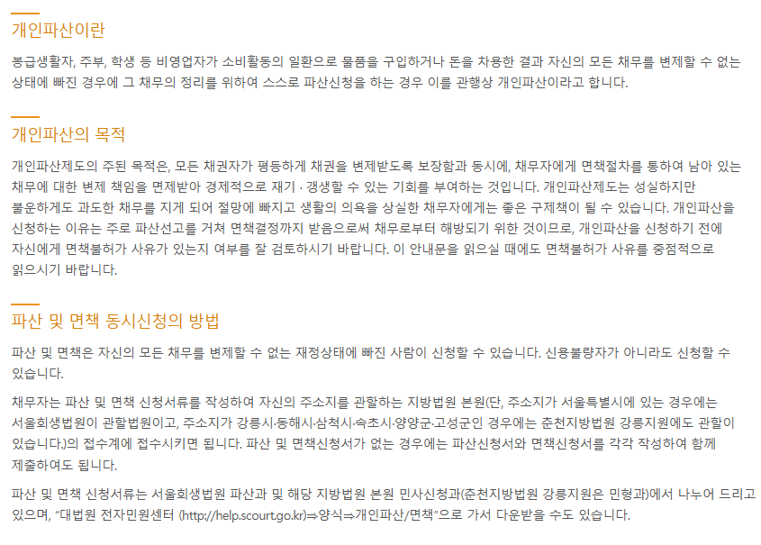 개인파산 신청 절차와 관련된 자세한 정보는 아래 사이트에서 확인하실 수 있습니다: