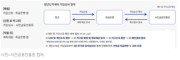 - 서민금융진흥원이 청년의 소득 및 가구 소득 요건을 확인.