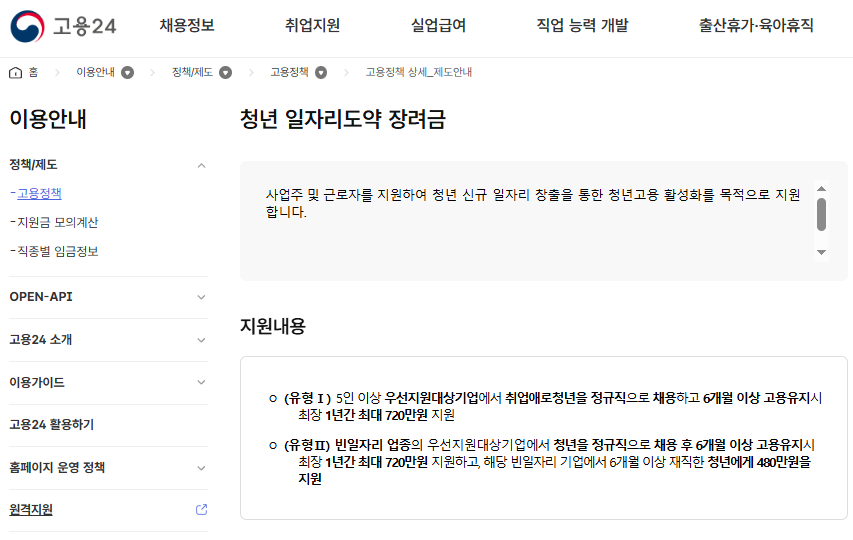 - 혜택: 기업에 최대 720만 원 지원