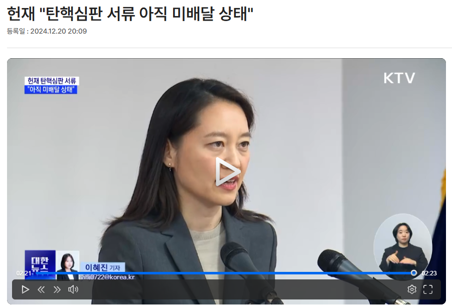 윤석열 대통령에 대한 탄핵소추와 관련해 헌법재판소가 송달한 탄핵심판 서류 미배달 문제가 계속되고 있습니다. 헌법재판소는 12월 16일부터 대통령실에 인편, 우편, 전자문서 시스템을 통해 서류를 송달하려 했으나, 현재까지 대통령실이 공식적으로 서류를 접수했다는 확인을 받지 못한 상황입니다.